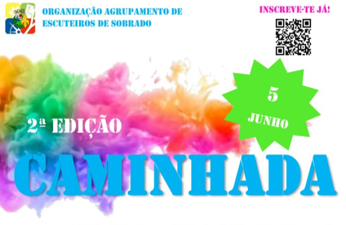 Com o objetivo de angariar fundos para suas atividades ao longo do ano, o Agrupamento de Escuteiros de Sobrado promove a 2ª edição da Caminhada Colorida. O evento ocorre no dia 5 de junho, com largada no Largo do Passal, em Sobrado, às 9h, e terá 8km de muita animação, diversão e, claro, muitas cores.